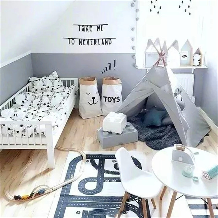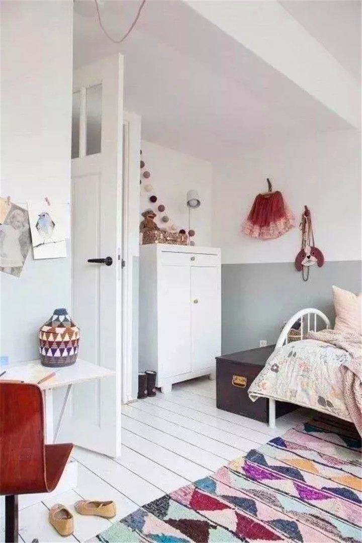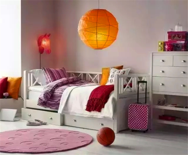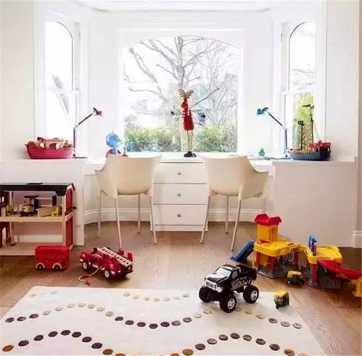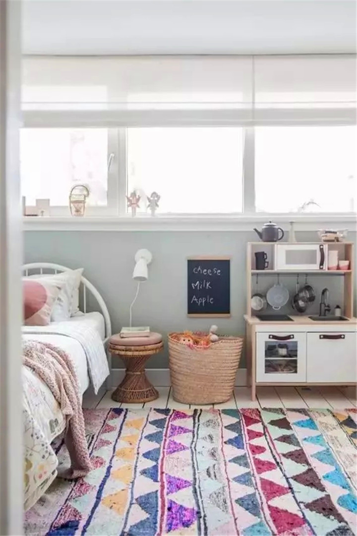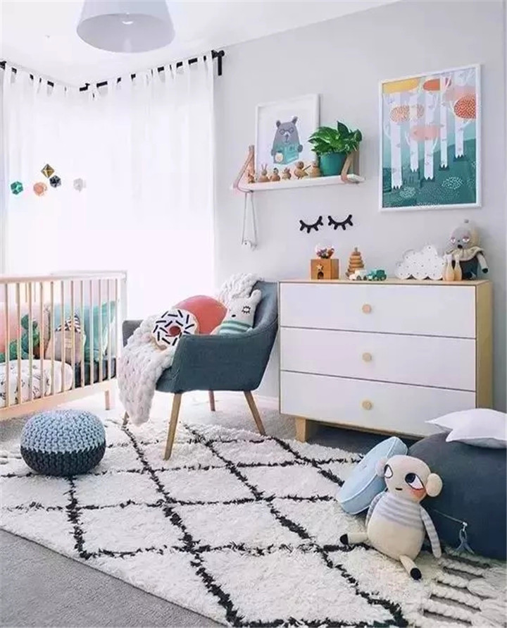 鋪上地板還不夠,加上厚厚的地毯/地墊才能很好地防止孩子滑到摔傷。地毯/地墊要選擇質(zhì)量好,柔軟度夠的,才能防止摔倒,還能在地板上玩。日式珊瑚絨地毯, 是兒童房必備單品之一。