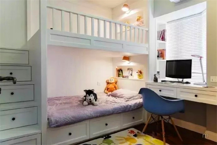 兒童房是身高比較矮的小朋友使用,所以在兒童房裝修的其中一個重要要訣就是:選擇適合小朋友高度的家具,例如床、書桌、凳子等。這些家具要根據(jù)小朋友的高度選擇。