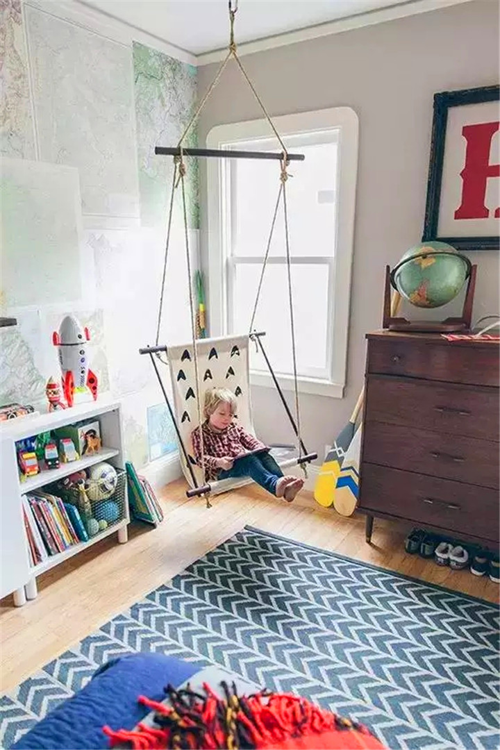 男孩好動,喜好探索,所以男孩子的房間可以放地球儀、汽車、地圖、秋千等元素的裝飾品,來進行軟裝搭配,表現(xiàn)出男孩子的陽剛一些的氣質(zhì)。