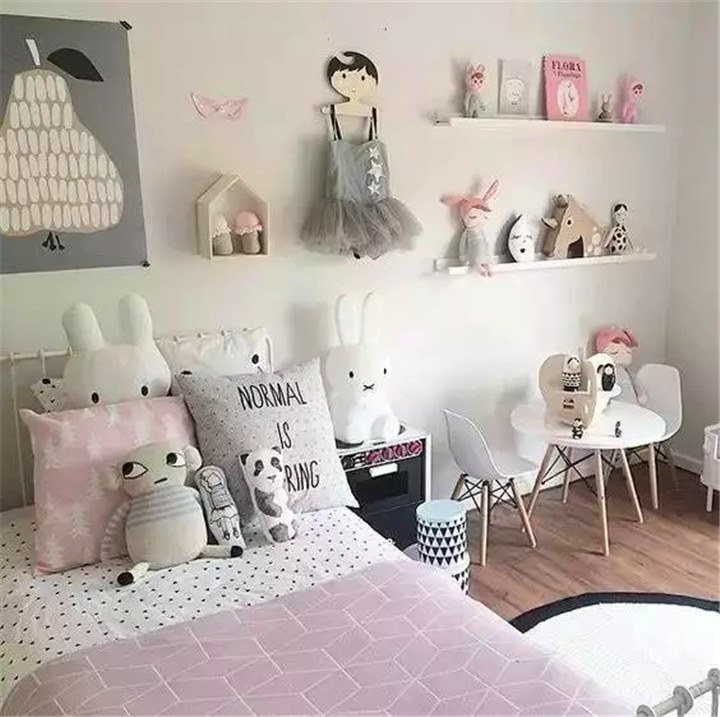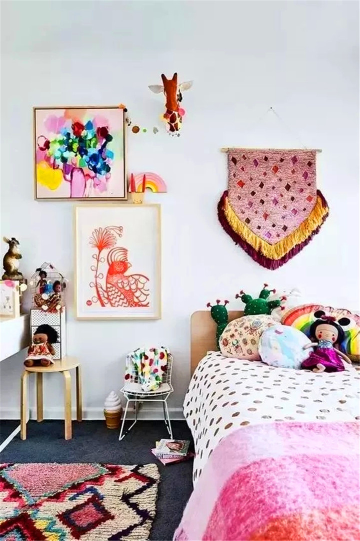 而女孩子的房間,可以把汽車玩具等裝飾換成各種可愛的玩偶、布娃娃、蕾絲元素的裝飾品。相對而言,女孩子的房間色調(diào)和各種小物件搭配都偏軟一些。
