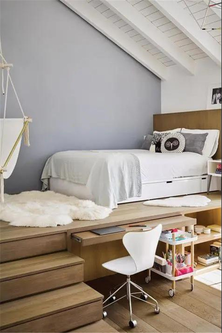 除此之外,把床抬高,下面做成其他設(shè)計也很實用。