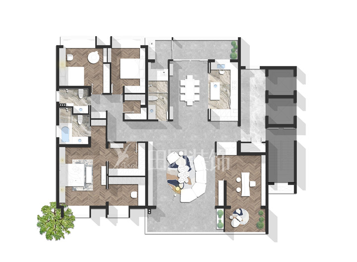 3、大陽臺(tái)不做隔斷處理,讓整個(gè)休閑陽臺(tái)更寬闊。