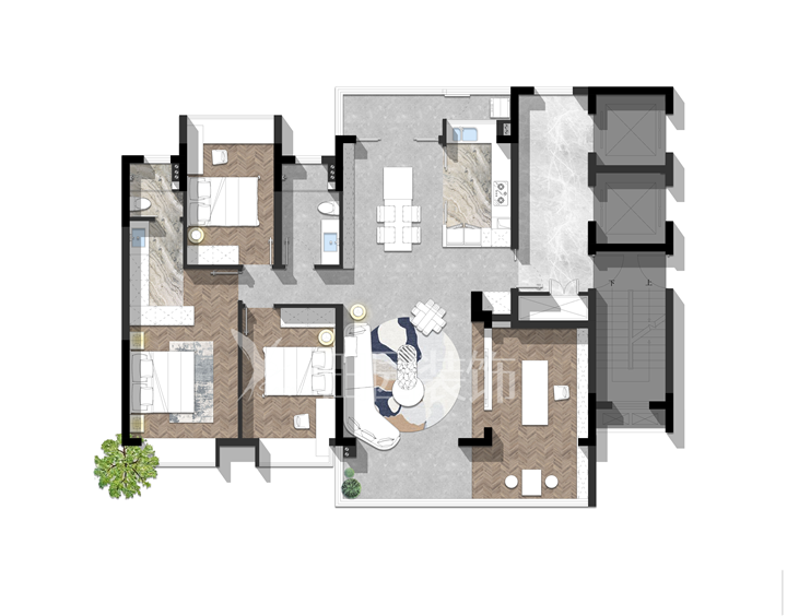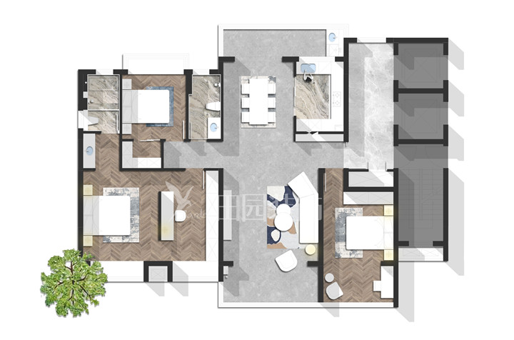 2、根據(jù)需求保留兩個(gè)臥室一個(gè)獨(dú)立書房,適合一家三口居住。