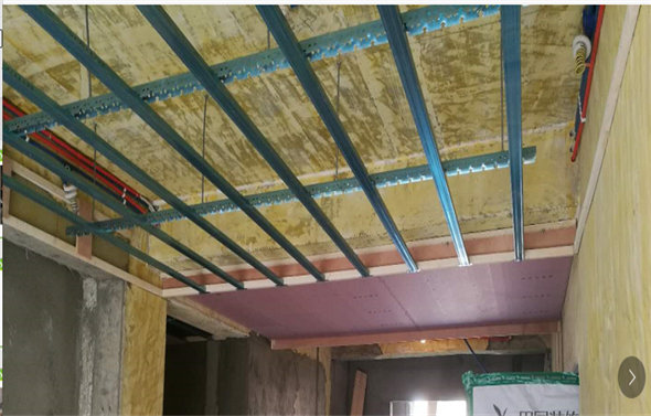 1、頂面橫平豎直,輕鋼龍骨為主、木龍骨為輔,邊頂窄于30cm可采用木龍骨。