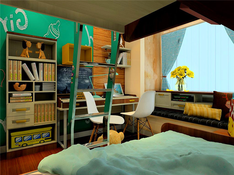 在兒童房裝修設(shè)計(jì)中,房間首選圓角設(shè)計(jì)的家具。如果不是圓角,書桌、柜子的邊緣建議用防撞條包起來(lái)。