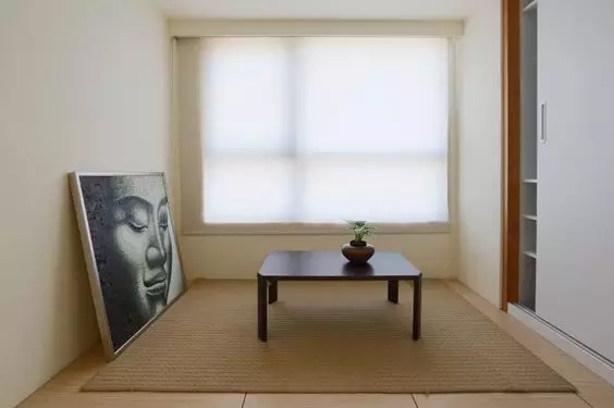 這張圖是采取折衷的辦法,并沒有完全采取“席地而坐”的家具,有些時候我們在考慮整體搭配的時候,可以選擇一些實用的低矮家具單品,來達到想要的效果。