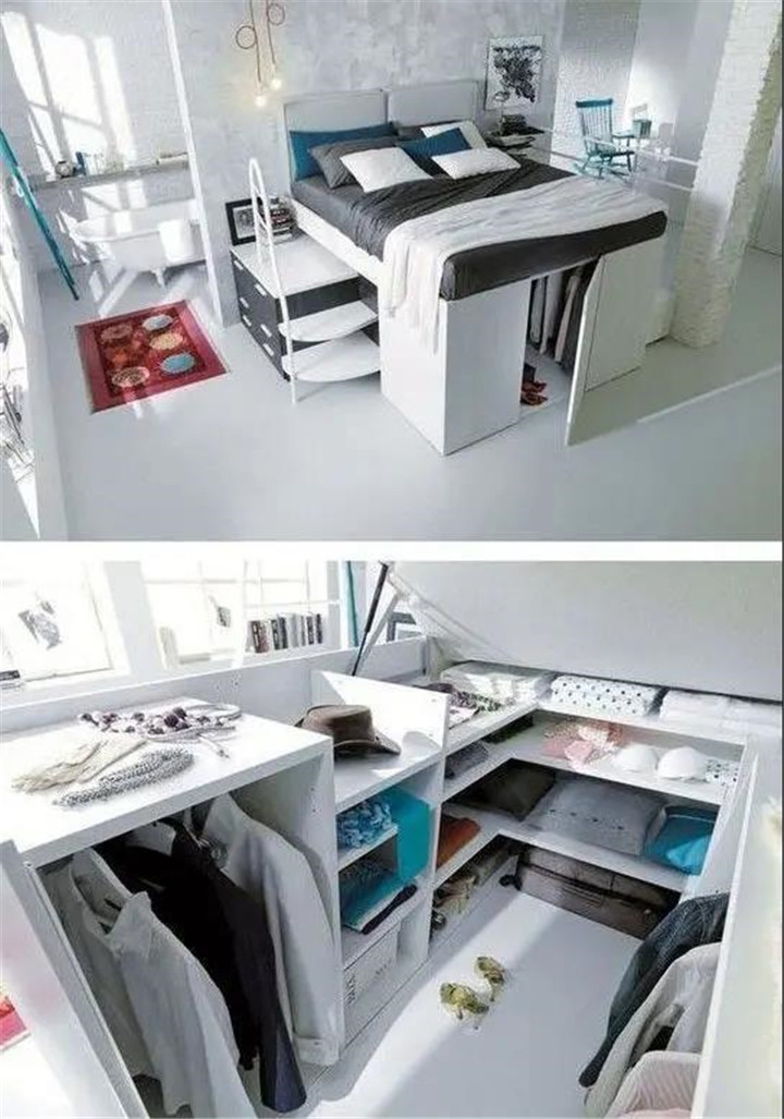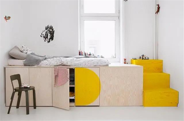 除此之外,把床抬高,下面做成其他設(shè)計也很實用。
