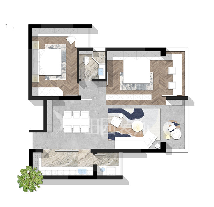 1、經(jīng)典兩室戶型,原始結(jié)構(gòu)改動(dòng)較少,保留兩室,每間臥室考慮獨(dú)立書桌。