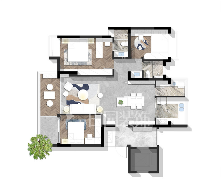 1、原始結(jié)構(gòu)改動(dòng)較少,保留四室,獨(dú)立書房。