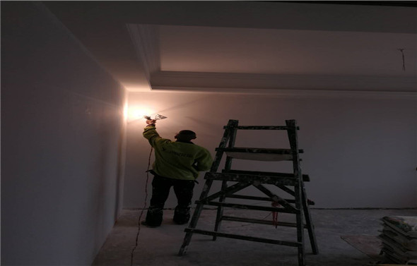 1、施工流程:陰角處理--基礎(chǔ)找補--底灰處理--膩子找平--打砂--底漆--清補--免漆--陰角處理。