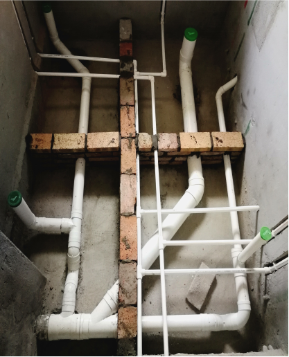 4、無回填層衛(wèi)生間水管鋪設(shè)前需開槽,不能開槽的在水管鋪設(shè)后需做找平處理。